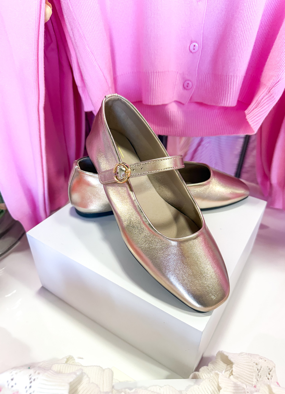 The classic Mary Jane gets a golden glow-up. ANNABELLE in Gold is your go-to flat for dressing up everyday looks or adding polish to an evening fit...