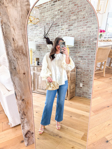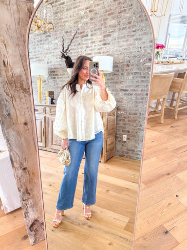 Camille Ivory Eyelet Blouse That floral cutwork detail is the kind of thing that gets compliments at the farmers market and again at dinner. This c...