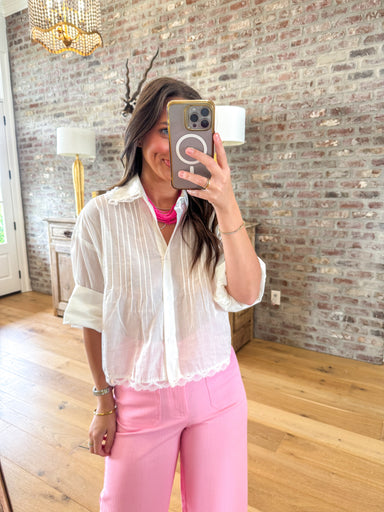 Sandra Top with Embroidery in White That scalloped embroidery along the hem and sleeves? It's the kind of detail that gets compliments at brunch an...