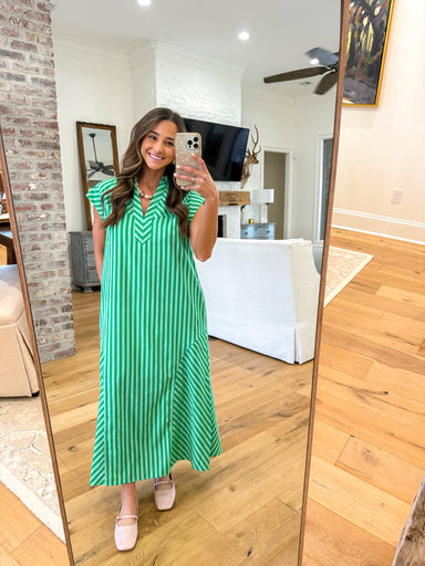 Green Striped Midi Dress Fresh, vibrant, and effortlessly easy 💚 This green striped midi dress is a standout piece designed for comfort and style. ...