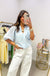The lightweight cotton feels like a gentle hug against your skin, and that relaxed V-neck hits just right – not too much, not too little. The soft blue shade plays beautifully with everything in your closet, from your favorite denim to that flowy skirt you've been waiting to wear. It's the perfect weight for our Louisiana weather – breathable enough for warm days but substantial enough to feel polished.