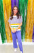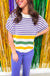 Bright, cheerful, and effortlessly easy to style—this striped knit top brings a playful pop of color to your everyday wardrobe. Designed with soft cap sleeves and a relaxed, boxy silhouette, it delivers that perfect blend of comfort and style. The lilac and cream micro-stripes across the top pair beautifully with the bold mustard, green, and ivory color blocking near the hem, creating a fresh, modern look you can wear year-round. Cozy without being heavy, it’s ideal for layering or wearing on its own.