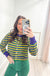 Perfect for women who love bold, playful style but need versatile pieces that work for both casual days and festive celebrations. The Mardi Gras Striped Cardigan brings vibrant color and retro charm to your everyday wardrobe without feeling costume-y or over-the-top.