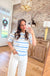 This is what you reach for when you want to look effortlessly put-together without trying too hard. The soft blue and white stripes give you that perfect preppy-casual vibe that works whether you're running errands in Lafayette or meeting friends for brunch on a Saturday morning. It's the kind of top that makes people think you always have your style figured out.