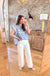 The powder blue chambray feels soft and breathable against your skin, while the delicate white eyelet embroidery along the neckline adds just enough feminine detail to make it special. The flutter cap sleeves give your arms the most flattering line, and the flowy fit skims your body in all the right places without clinging anywhere you don't want it to.