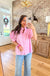 That soft cotton feels like your favorite tee but looks infinitely more polished. The relaxed fit skims your body in all the right places, and those working buttons mean you can style it buttoned up for that preppy-chic vibe or throw it open over a tank when the Louisiana heat kicks in. The hip length is perfect for tucking into high-waisted jeans or letting it flow loose over leggings.
