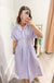 The gathered waist hits just right to give you that hourglass shape, while the ruffle collar adds just enough vintage charm without looking costume-y. Those side pockets are the kind of detail that'll make you smile every time you slip your hands in. The lavender gingham feels fresh and feminine without being too precious.