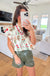 Romantic, feminine, and effortlessly charming, The Azalea Floral Blouse is a timeless floral piece perfect for both casual and polished looks. Crafted in an ecru base with red and green floral accents, this blouse features delicate ruffle cap sleeves, a flattering V-neckline adorned with ruffle detailing, and working buttons down the front for a classic touch. The straight, waist-length fit ensures versatility and ease of styling.