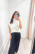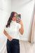 Viscose blend knitted vest with turtleneck. Ribbed knit