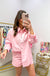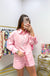 The oversized poplin shirt gives you that relaxed, borrowed-from-his-closet vibe but actually fits like it was made for you. The shorts hit that sweet spot between polished and comfortable, with an elastic waistband that won't dig in and pockets because functional fashion is the best fashion. The light pink is soft enough to feel romantic but not so precious you can't wear it to run errands.