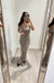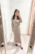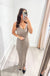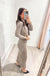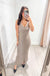 Viscose blend knitted long sleeveless dress with deep V neckline. Slits on bottom. Ribbed knit