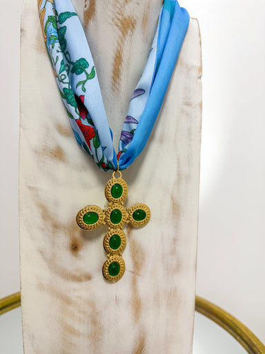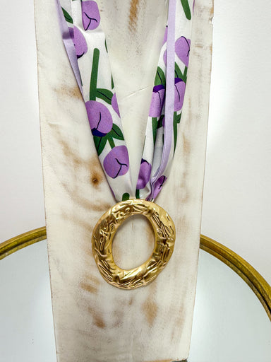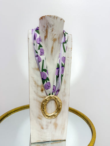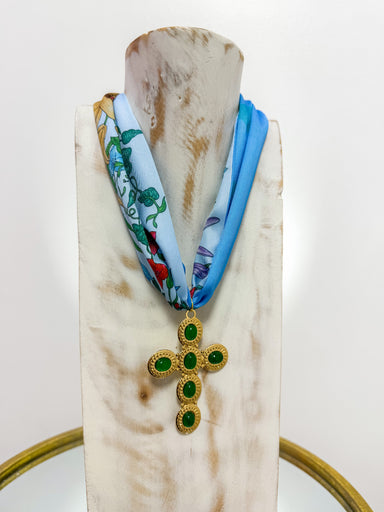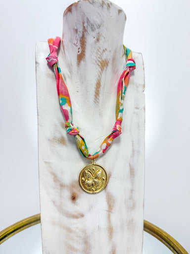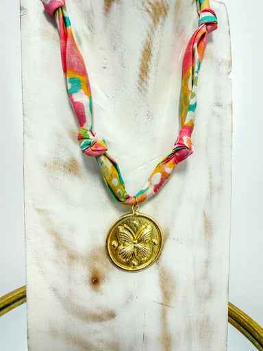 Gold Butterfly Pendant Colorful Scarf Necklace