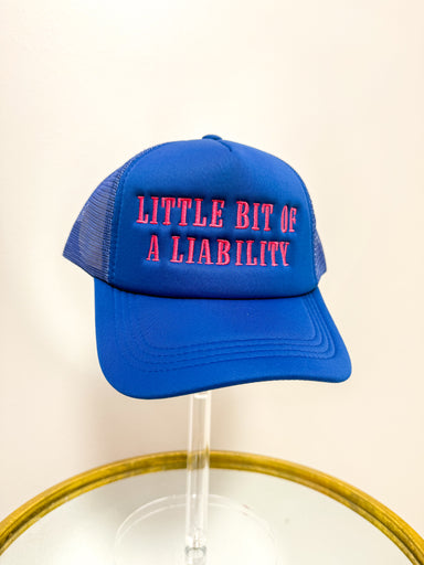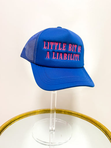 Little Bit Of A Liability Trucker - Royal & Pink Royal trucker - Pink writing