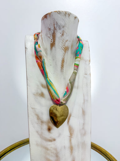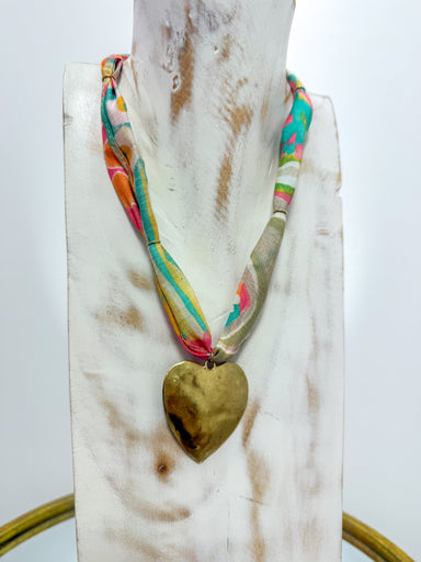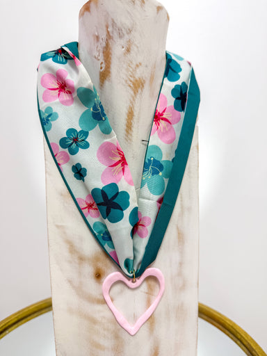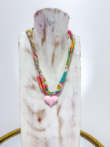 Small Pink Enamel Heart Colorful Scarf Necklace