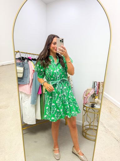 Spring Kiss Kelly Green Floral Mini Picture yourself floating through a sunny brunch date or strolling through the farmers market, turning heads wi...