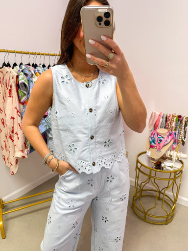 Baby Blue Eyelet Tank This is what you reach for when you want to look effortlessly put-together without trying too hard. The kind of top that make...