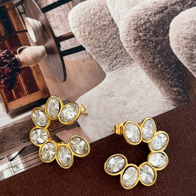$35.00| /Golden Radiance Hoop Stud Make a bold yet timeless statement with our Golden Loop Statement Earrings. Crafted with interlocking polished gold-tone...