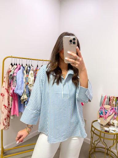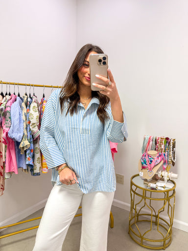 Powder Blue Dreams Boxy Striped Top The one you reach for when comfort meets cute, and you need both in equal measure. This is your Saturday mornin...