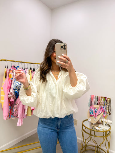Effortless Elegance Cream Blouse The one you reach for when comfort meets cute – and you refuse to choose between them. Perfect for those Sunday mo...