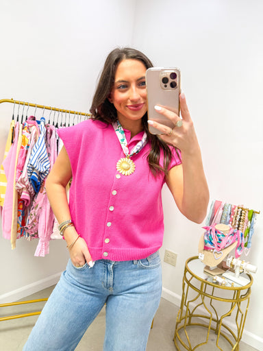 Hot Pink Rolled Sweater Vest For the mornings when you want to look intentionally put-together without the effort. This is your "I woke up like thi...