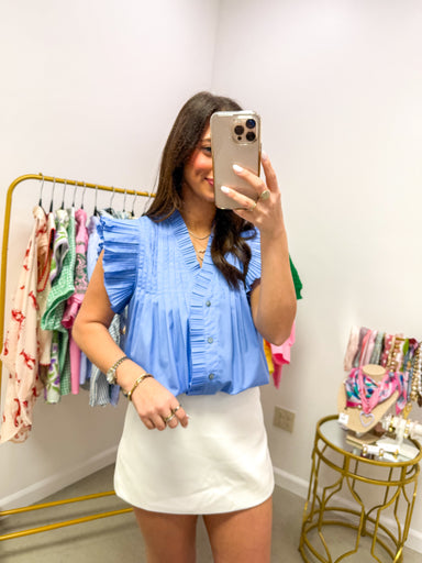 **Cloud Nine Blue Top** This is what you reach for when you want to look put-together without trying too hard. The kind of top that makes running e...