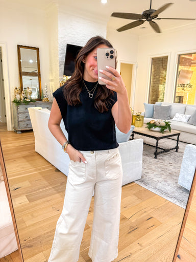 Say hello to your new favorite statement denim — the Tatum Scallop Pocket Denim. Designed with a flattering high-rise fit and straight-leg silhouet...