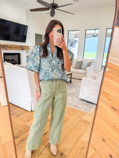 Fresh and feminine, this Savannah Green Floral Top is a charming addition to your everyday wardrobe. Featuring short puff sleeves and a flattering ...