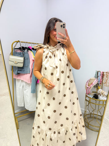 Pretty in Polka Midi Dress Picture yourself floating through a dreamy brunch date or strolling cobblestone streets on vacation – this polka dot bea...