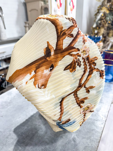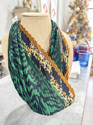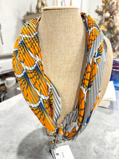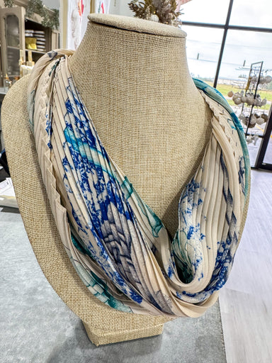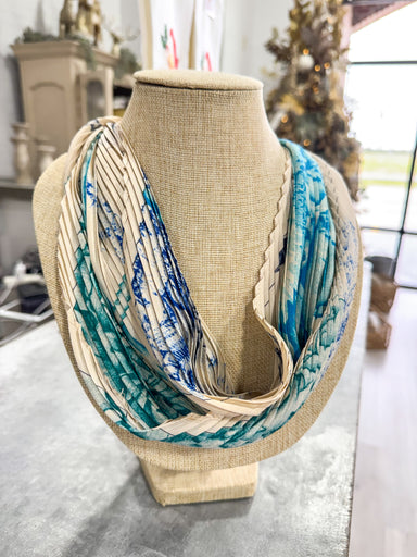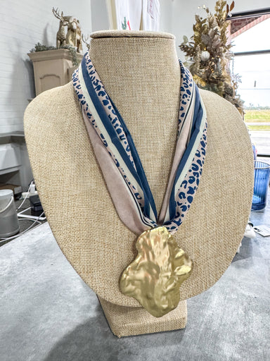 Tan & Blue Cheeta Scarf Necklace Gold Pendant