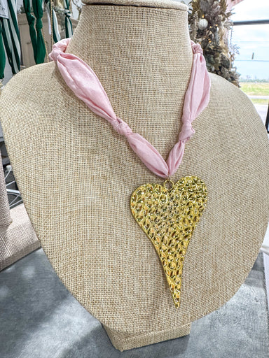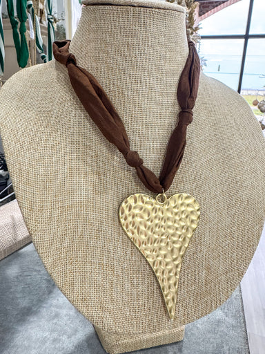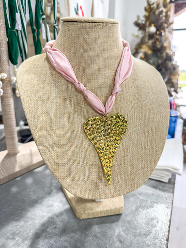 $45.00| /Neutral Polka Dot Large Heart Scarf Necklace large heart pendant
