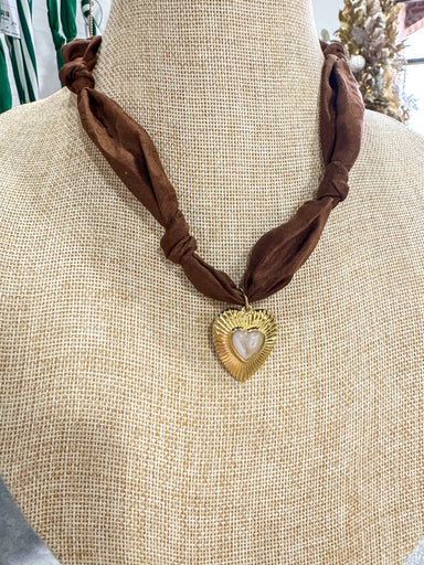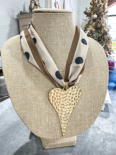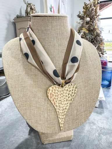 Neutral Polka Dot Large Heart Scarf Necklace