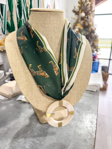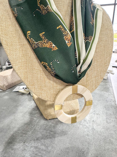 Olive Cheeta Scarf Necklace Ivory Circle Pendant