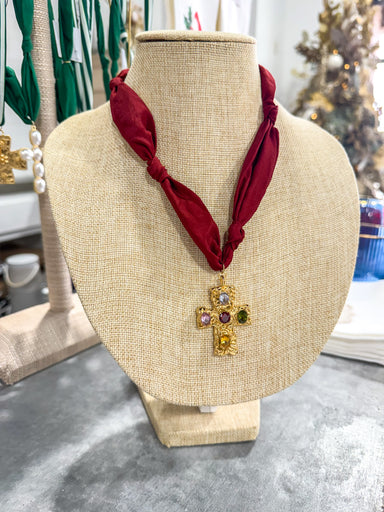 Lariat Pearl Cross Necklace
