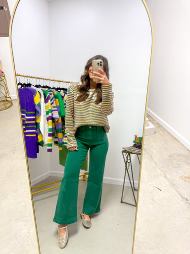 Game day, girls' night, or Tuesday brunch? This sequin sweater brings the celebration energy wherever you go. The bold "MARDI GRAS" lettering sp...