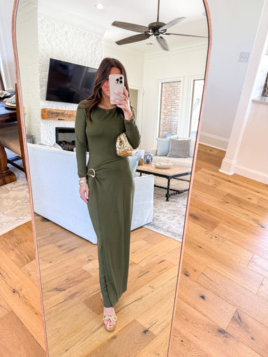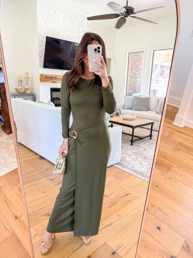 Sophisticated, sleek, and endlessly flattering, The Selene Maxi Dress is designed to make a statement. Crafted in a rich olive green hue with comfo...