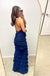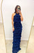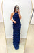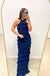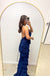 • Shimmering navy fabric catches the light with every movement, so you'll photograph beautifully under ballroom chandeliers and feel radiant all evening