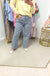 Featuring a high-rise waist, this jean blends a relaxed, modern fit with a flattering, fashion-forward silhouette. The navy gingham pattern adds a fresh, playful twist, bringing a touch of timeless charm to this contemporary style. 12'' RISE, 27'' INSEAM, 10'' OPENING