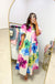 Picture yourself strolling through a sunset dinner date or exploring cobblestone streets on vacation – this vibrant floral maxi makes every moment feel like a romantic escape. The dreamy hibiscus blooms and flowing silhouette create that effortless elegance that has everyone asking where you got your dress.