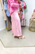 The high-rise waistline hits at just the right spot to elongate your silhouette, while the bias-cut drape moves like liquid silk with every step. The internal elastic waistband means no digging in, no adjusting – just smooth lines and that confident feeling that comes when everything fits exactly right. The blush pink catches the light in all the right ways without being too precious.