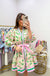 • Blue, green, and yellow floral print
