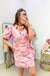 The pink floral print hits that sweet spot between feminine and fun, while the belted waist gives you shape in all the right places. Real working buttons mean you can adjust the neckline how you want it, and those little puff sleeves add just enough drama without feeling costume-y. The pockets are deep enough for your phone and lipgloss - because a dress without pockets is just pretty fabric.