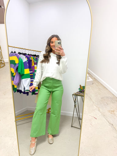 Mardi Gras White Pearl Sweater This is what you reach for when you want all the sparkle without any of the effort. The sweater that gets you notice...