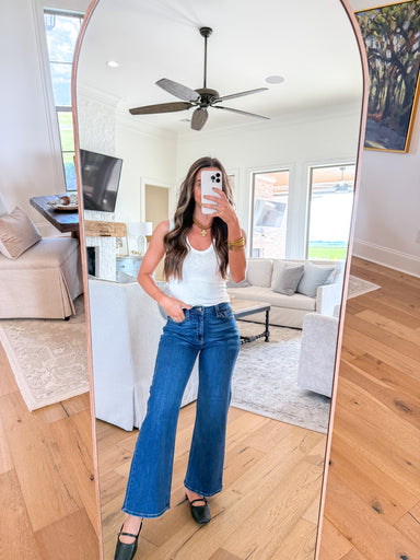 Elevate your everyday style with the Alta White Top—a fresh and modern take on the classic tank. Designed with a flattering bubble hem for a softly...
