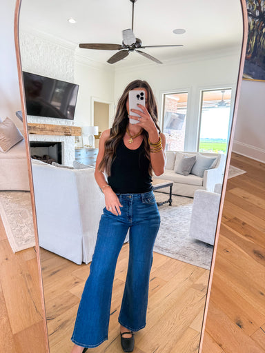 Olivia Black Tank Material: 95% Rayon 5% Spandex Tank top Round neckline Ribbed knit material Stretchy Unlined Non-sheer Waist length True to siz...