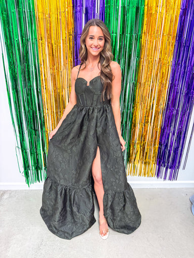 Make an unforgettable entrance in this stunning olive ball gown—romantic, elegant, and designed to flatter from every angle. Featuring a structured...