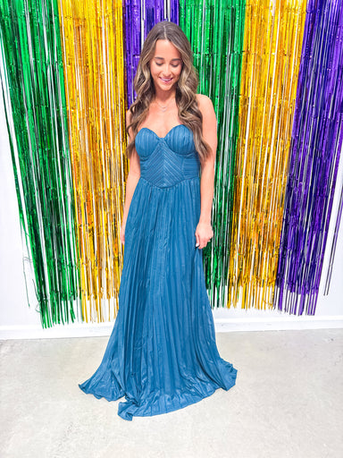 Step into elegance with this breathtaking teal ball gown—equal parts romantic and refined. Featuring a beautifully structured bodice with subtle co...