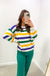 Picture yourself bringing joy to every room you enter in this vibrant striped sweater that captures the festive spirit of Mardi Gras year-round. Whether you're meeting friends for coffee, running weekend errands, or adding a pop of celebration to your day, you'll feel effortlessly fun and confidently colorful.