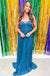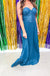 Step into elegance with this breathtaking teal ball gown—equal parts romantic and refined. Featuring a beautifully structured bodice with subtle corset-inspired seaming and adjustable spaghetti straps, this gown creates a flattering, feminine silhouette. The full-length skirt flows effortlessly with soft pleating that adds movement, shine, and that dreamy ballroom-worthy finish.