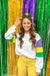 Bright, bold, and effortlessly cozy — this color-block sweatshirt is the perfect statement piece for casual days. Featuring vibrant purple, yellow, and green panels along the sleeves, this top brings a fun pop of color to a classic silhouette. Made from a soft, mid-weight knit fabric, it offers a relaxed fit that’s comfortable for all-day wear. Pair it with denim shorts, leggings, or your favorite joggers for an easy, laid-back look with personality.