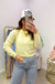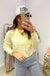 The butter yellow and cream stripes are soft enough to flatter but bright enough to catch compliments. The slightly cropped length hits just right - not too short, not too long - and that round neckline keeps it classic. The knit has just enough stretch to move with you but holds its shape all day.